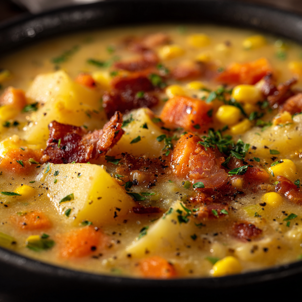 The combination of creamy milk, tender vegetables, and crisp bacon creates a balanced texture in every spoonful. It’s filling enough to serve as a main course, especially alongside crusty bread or warm biscuits.