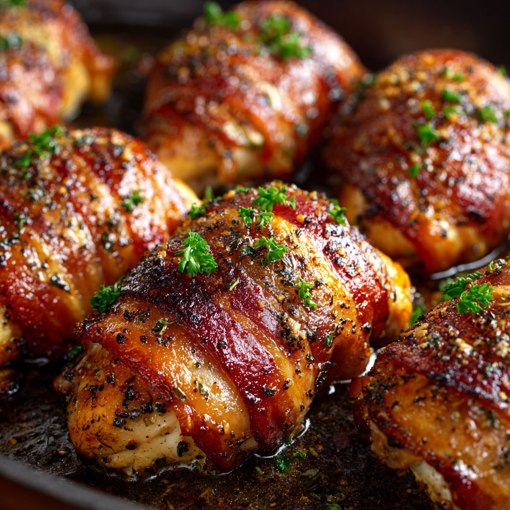 Each bite of this savory creation is a balance of textures and taste: juicy, seasoned chicken enclosed in a golden layer of crisped bacon that seals in flavor and moisture. The ranch seasoning does more than add a hint of herb and garlic—it enhances the natural richness of the bacon and the heartiness of the chicken.