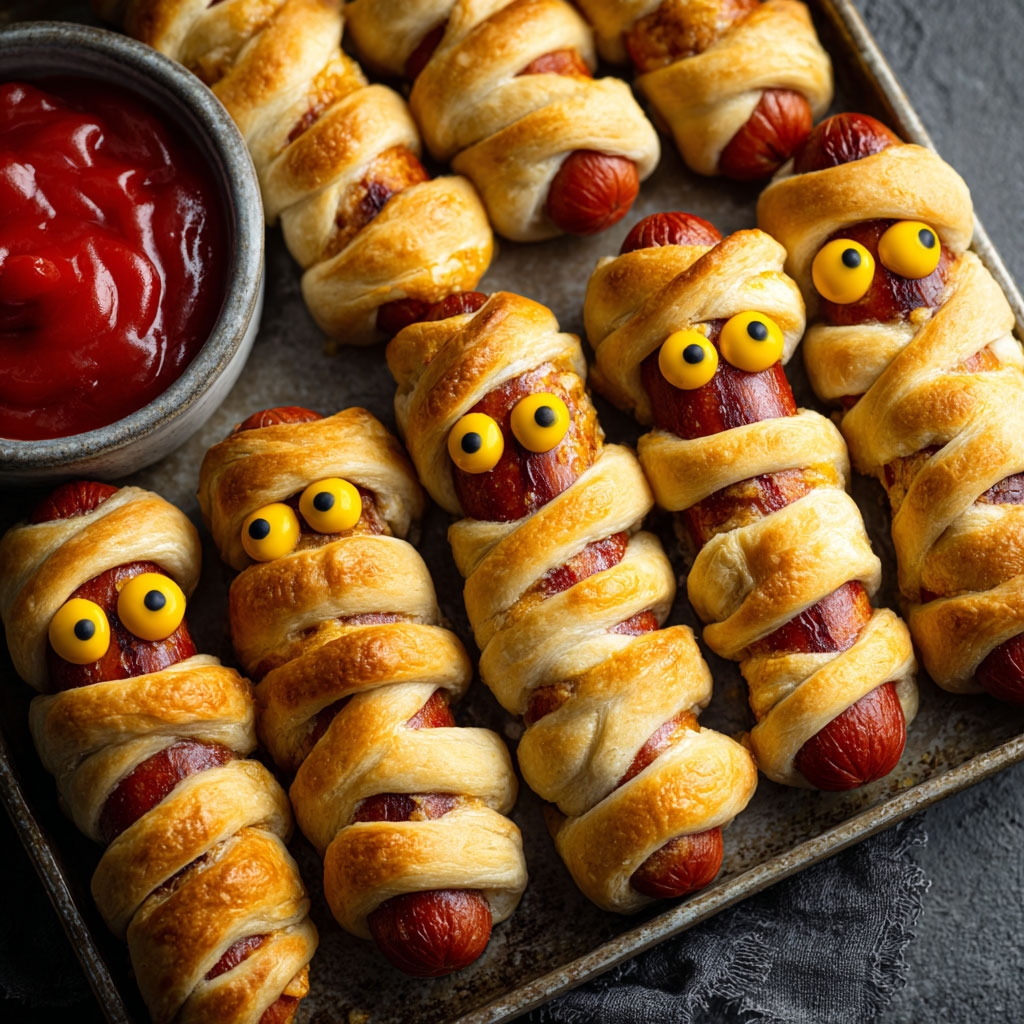 Mummy Hot Dogs are a playful and spooky twist on the classic pigs in a blanket. Perfect for Halloween parties, these hot dogs are wrapped in crescent roll “bandages” that bake up golden and flaky. With mustard or ketchup eyes peeking through, they’re as festive as they are delicious. Both kids and adults will get … Read more