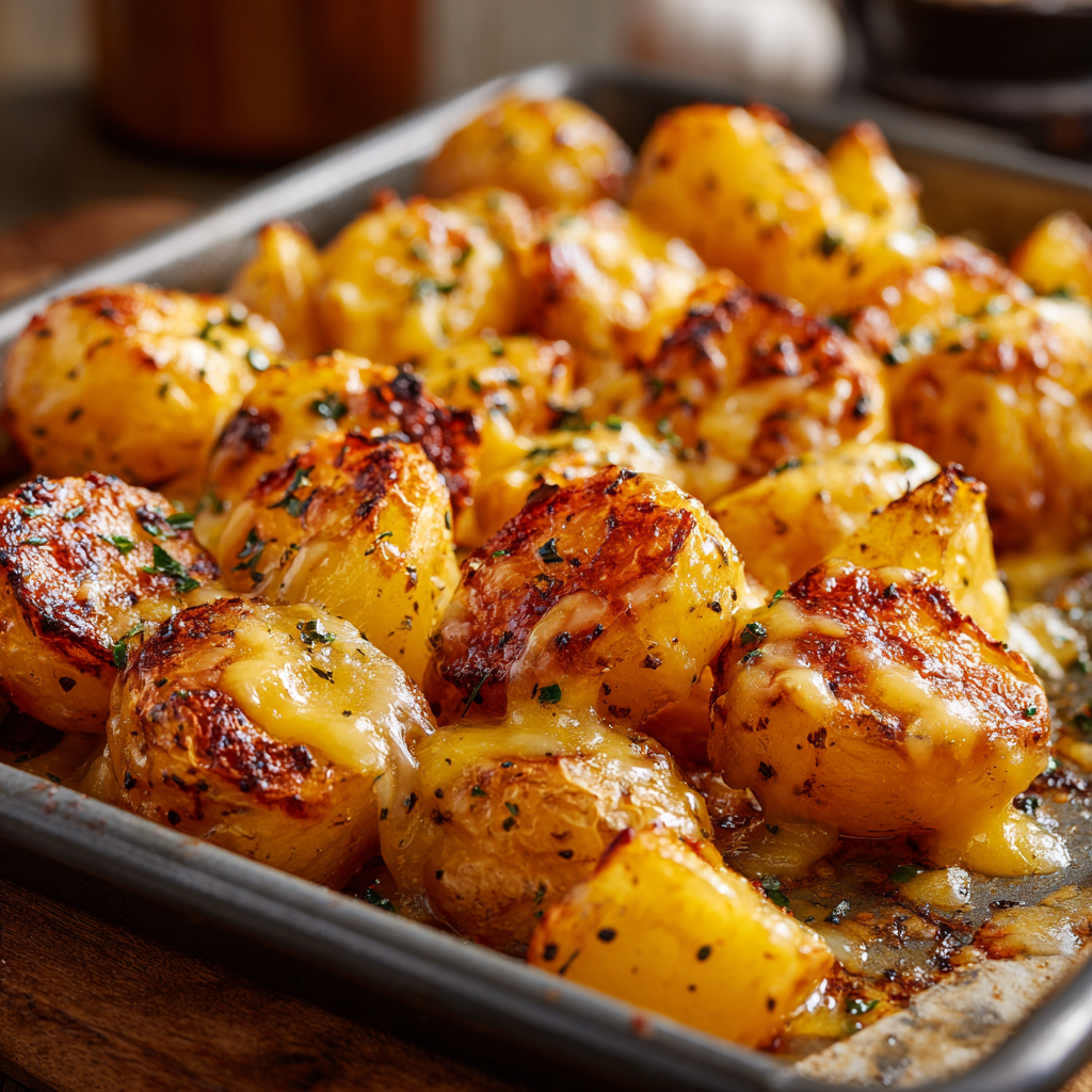 Cheesy Ranch Oven-Roasted Potatoes are the kind of side dish that instantly steals the spotlight. Crispy on the outside, fluffy on the inside, and coated in savory ranch seasoning, these potatoes deliver bold flavor in every bite. Finished with a generous layer of melted cheese, they are comfort food at its best.
