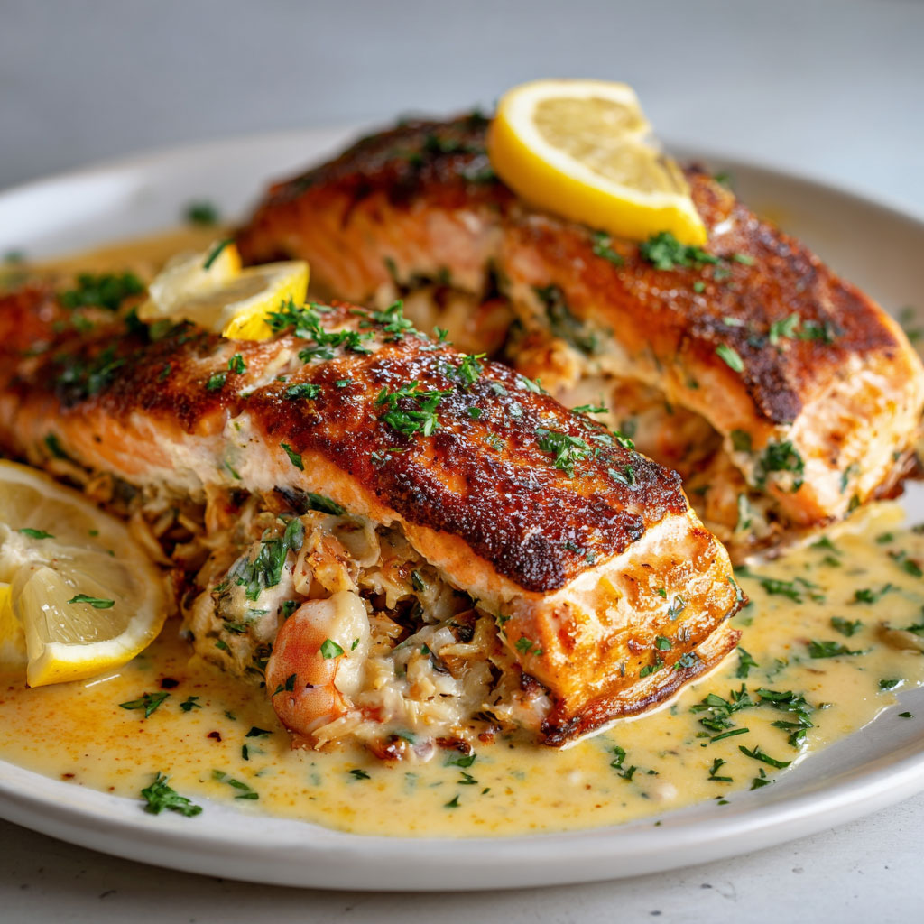 If you’re looking to impress guests or simply elevate a weeknight dinner, this crab and shrimp stuffed salmon is an exceptional choice. Packed with creamy seafood filling and enveloped in rich, flaky salmon, this dish blends restaurant-quality flavor with approachable preparation. It’s elegant enough for special occasions yet simple enough for a satisfying home-cooked meal.