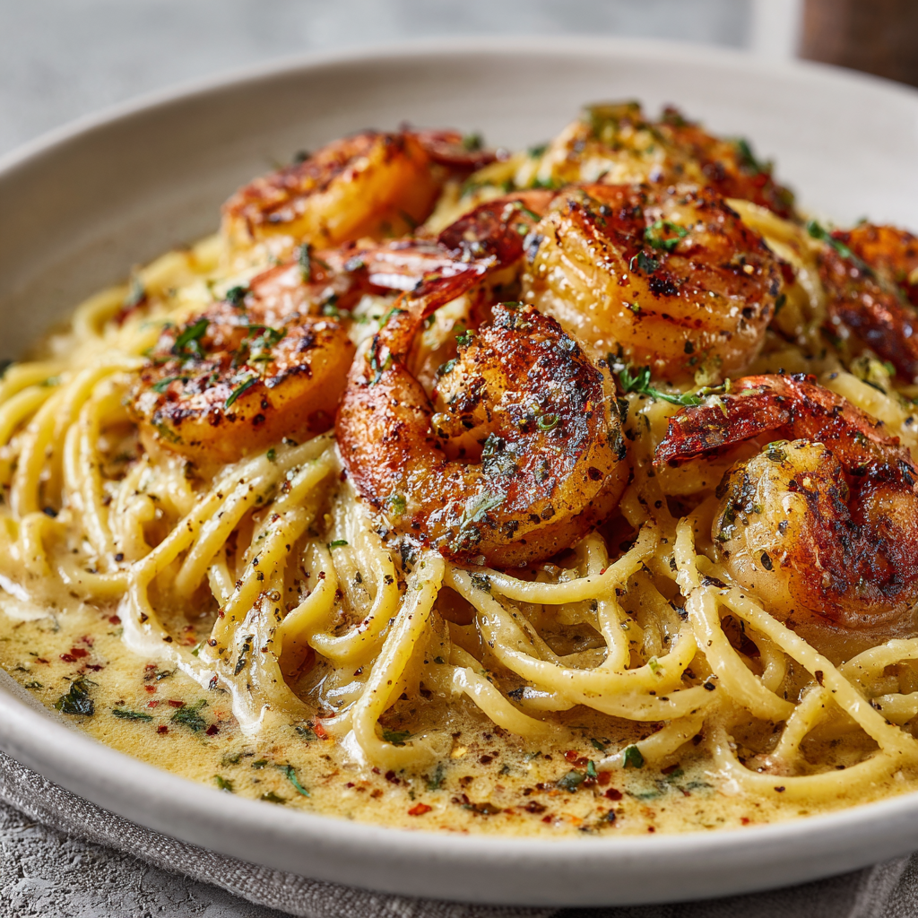 The sauce is simple yet luxurious. Garlic gently sautéed in butter creates a deep, aromatic base, while cream and Parmesan melt together into a smooth, velvety finish. A touch of seasoning and optional red pepper flakes bring balance and warmth without overpowering the shrimp.