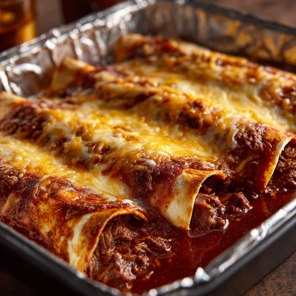 These shredded beef enchiladas are the definition of New Mexico comfort food. Tender, slow-cooked beef is wrapped in soft tortillas, smothered in bold red chile sauce, and baked until the cheese melts into a bubbling, irresistible topping. Every bite is rich, savory, and deeply satisfying.