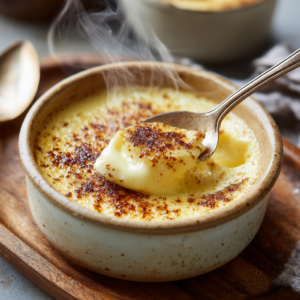 This custard is delicately flavored with vanilla and finished with a light dusting of nutmeg, giving it a warm, nostalgic aroma as it bakes. The slow cooking process and water bath ensure a smooth, creamy consistency that melts in your mouth with every spoonful.