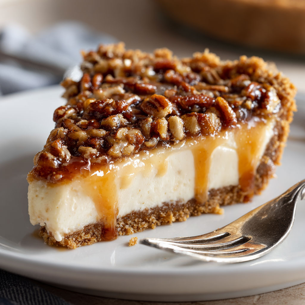 At the base is a buttery graham cracker crust that comes together in minutes and provides a perfect contrast to the creamy filling. The center layer is a velvety blend of whipped topping, cream cheese, and vanilla—light, luscious, and just sweet enough. But what takes this pie over the top is the warm pecan topping, cooked until thick and glossy, then poured over the chilled filling to set into a chewy, nutty finish.