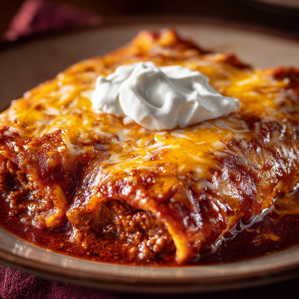 Red Chile Beef Enchiladas are a comforting New Mexico classic — hearty, deeply flavorful, and drenched in silky red chile sauce. Each enchilada is rolled in softened corn tortillas, filled with seasoned beef and melty cheese, then smothered in more bold red chile before being heated to bubbling perfection. It’s the kind of cozy, saucy dish that delivers warmth, nostalgia, and a satisfying kick in every bite.