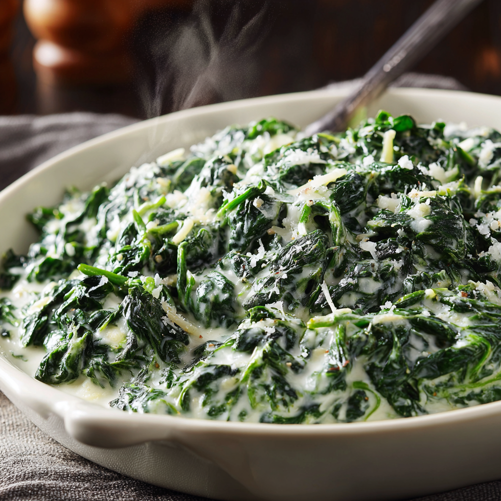Fresh spinach is lightly blanched, finely chopped, and folded into a luxurious garlic cream sauce made with butter, cream, cream cheese, and Parmesan. The result is ultra-smooth, intensely savory, and perfectly balanced without being overly heavy.