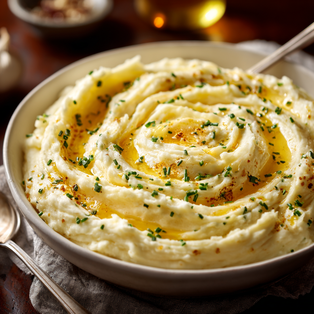 Roasted garlic is the star here. Slowly baked until soft and golden, it adds a mellow sweetness that blends seamlessly into the potatoes without any harsh bite. Combined with plenty of butter and warm cream, the result is luxurious and perfectly balanced.