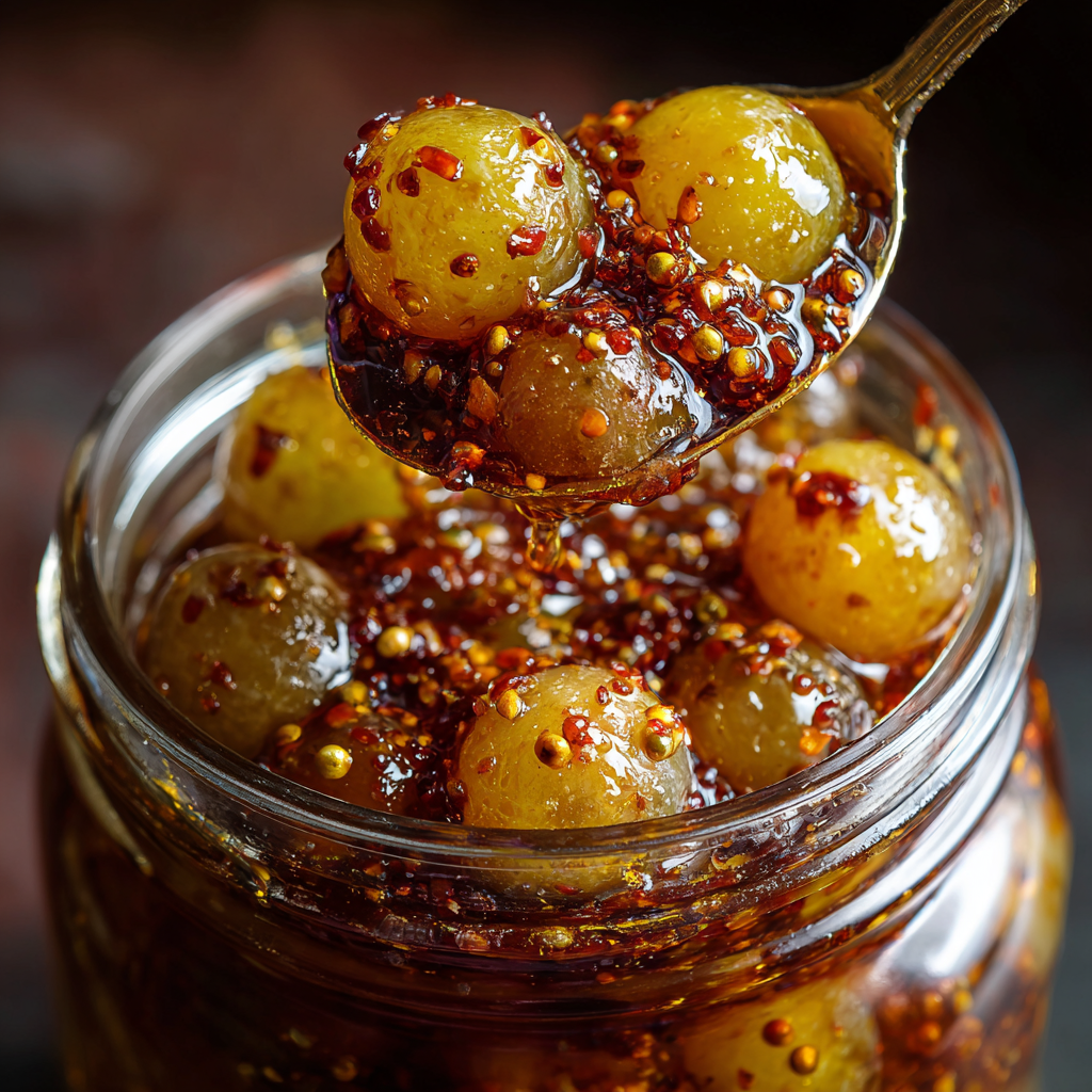 The magic of this recipe lies in its contrast. Naturally sweet grapes absorb the sharpness of apple cider vinegar while balancing it with sugar and honey. The result is a bright, tangy bite followed by a gentle sweetness that keeps things refreshing rather than overpowering. A hint of garlic and mustard seeds adds an unexpected savory depth that makes these grapes stand out.