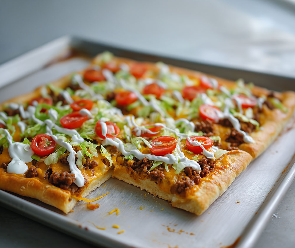 Taco Pizza is the ultimate marriage of two weeknight favorites—zesty tacos and comforting pizza. With its crisp crescent roll crust and layers of seasoned beef, creamy cheese sauce, and fresh toppings, it’s a crowd-pleaser that delivers Tex-Mex flair in every slice.