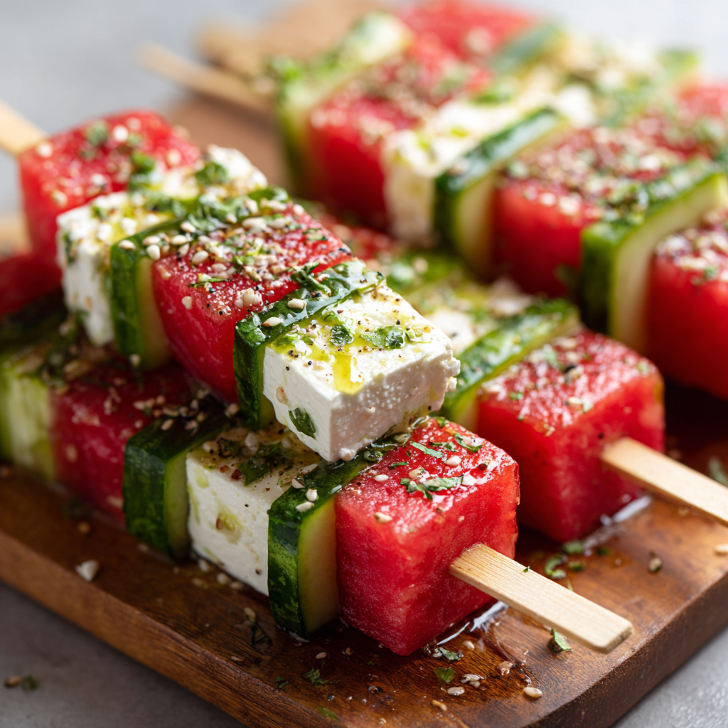 Each bite delivers layers of texture and taste. The juicy watermelon refreshes, the cucumber adds crunch, and the feta brings creamy saltiness that ties everything together. A drizzle of olive oil and fresh citrus elevates the skewers from simple snack to standout appetizer.