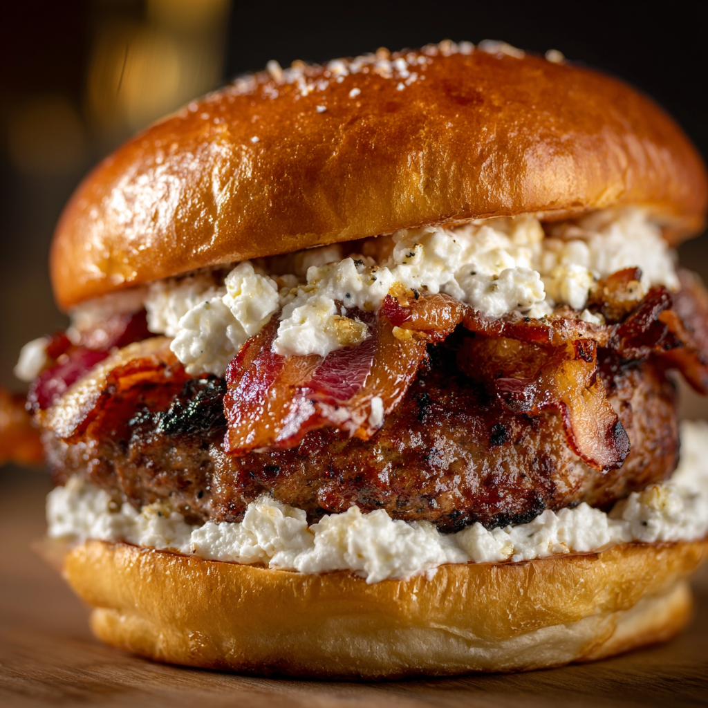 What sets these burgers apart is the contrast of textures and flavors. The crisp edges of the smash patty meet the salty crunch of bacon, while the whipped feta adds a smooth, tangy richness that balances the savory beef perfectly. Every bite is messy, satisfying, and full of character.
